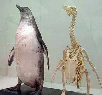 从企鹅的骨骼来看,有三个突出的特征:长脖子;一双占了全身三分之一的大长腿;胸骨宽厚有突出的龙骨。