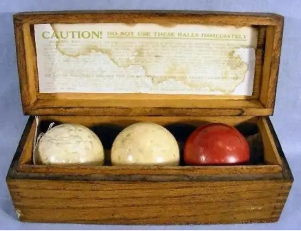 早期的赛璐珞台球标着安全警告