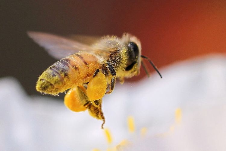 蜂花粉是蜜蜂所需蛋白质的主要来源。蜜蜂能用前、中足刷下粘附于全身绒毛上的花粉,由后足传到花粉耙上,再通过按压推送到胫节外侧的花粉篮内。经反复多次,使左右后足上的花粉团逐渐增大至重量相等时,飞携回巢,由内勤蜂嚼碎捣实,涂上蜂蜜和唾液贮存于蜂房内,再经乳酸菌的作用,即成为可长期储存的蜂粮。