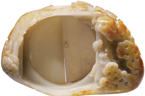 图① 北京故宫博物院的珍宝馆里珍藏着一件十分有趣的玉雕,名曰《桐荫仕女玉山》(图①)。这件玉雕长25厘米,宽10.8厘米,高15.5厘米,展现的是婉约清新的江南庭院,艺术场景与故宫所藏油画《桐荫仕女图屏》十分相似,堪称一幅“立体油画”。虽然该玉雕的视角仅局限于院门这一狭小的范围,却意境非凡,生动有趣:院门为圆月形,两扇门为对开式,其中一扇紧闭,另一扇微微打开;两位身着长衣的少女分别立于大门内外,一位手拿灵芝,一位手捧宝瓶,两相对望...